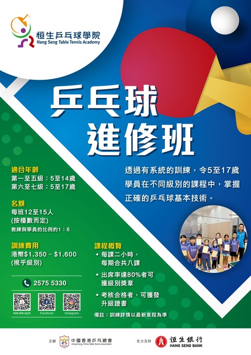 詳情可瀏覽恒生乒乓球學院 進修班主頁 主頁。