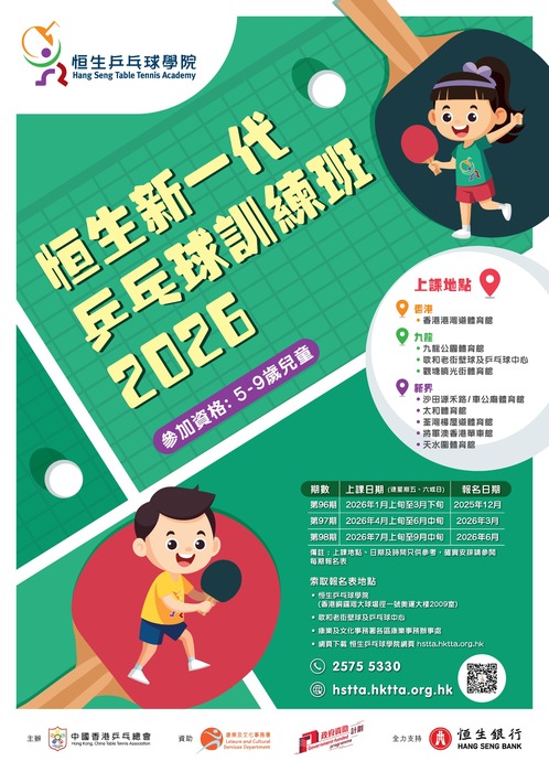 詳情可瀏覽恒生乒乓球學院 新一代訓練班 主頁。